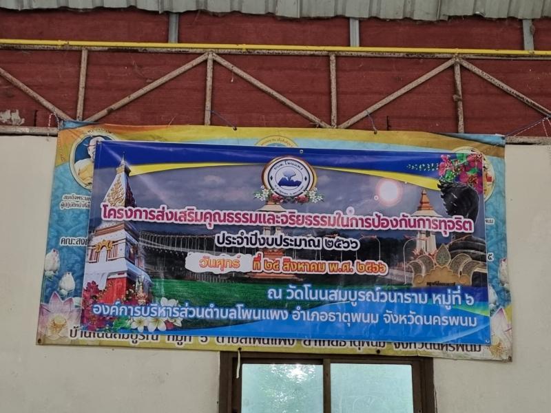 รายละเอียด : นายสังคม แสนคำ นายกองค์การบริหารส่วนตำบลโพนแพง พร้อมด้วย คณะผู้บริหาร สมาชิกสภา ปลัด ข้าราชการ พนักงาน ลูกจ้าง ดำเนินโครงการส่งเสริมคุณธรรมและจริยธรรมในการป้องกันการทุจริต ประจำปีงบประมาณ 2566 ณ วัดโนนสมบูรณ์วนาราม หมู่ที่ 6 เพื่อส่งเสริมให้เจ้าหน้าที่ของรัฐปฏิบัติหน้าที่ด้วยความซื่อสัตย์สุจริต มีคุณธรรมและจริยธรรมปฏิบัติหน้าที่โดยยึดหลักของกฎหมาย คำนึงถึงผลประโยชน์ส่วนรวมมากกว่าส่วนตน สามารถนำความรู้ทั้งทางโลกและทางธรรมเป็นแนวทางในการดำเนินชีวิตต่อไป