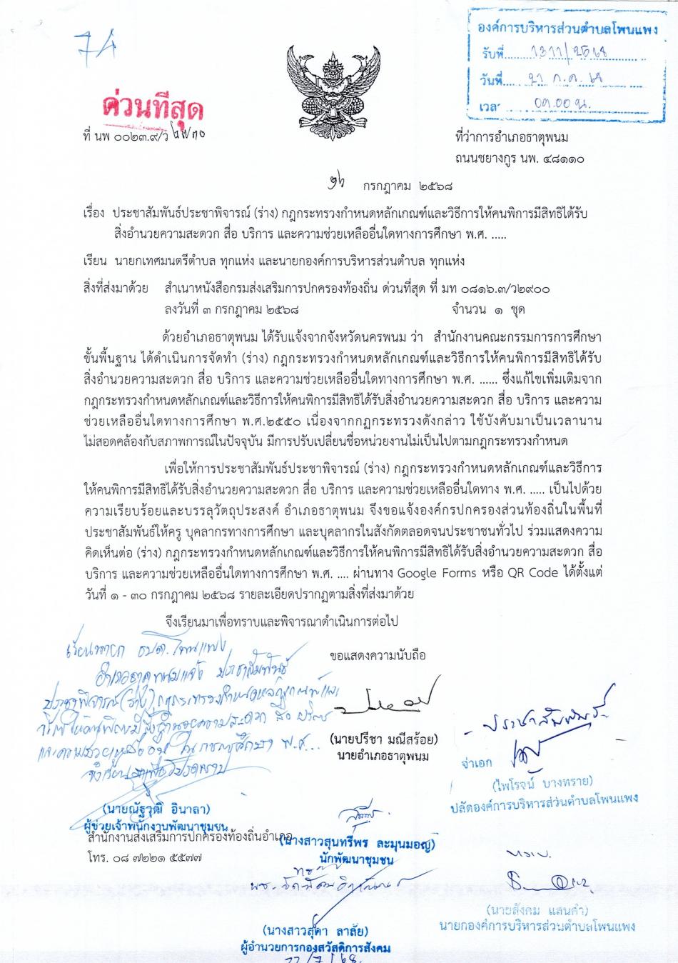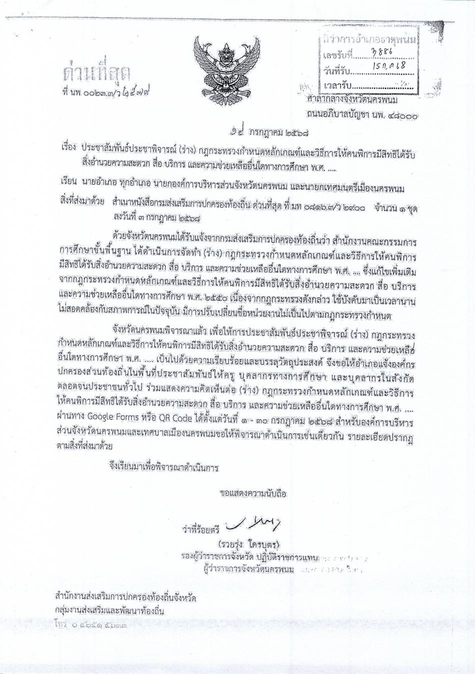 ประชาสัมพันธ์ประชาพิจารณ์ (ร่าง) กฎกระทรวงกำหนดหลักเกณฑ์และวิธีการให้คนพิการมีสิทธิได้รับสิ่งอำนวยความสะดวก สื่อ บริการ และความช่วยเหลืออื่นใดในทางการ