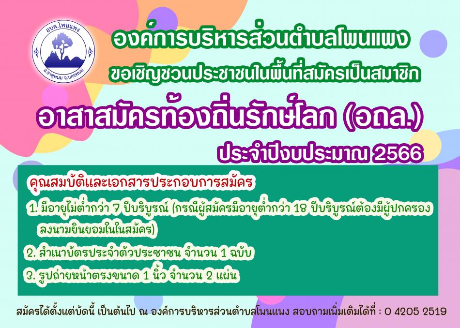 เชิญชวนประชาชนสมัครเป็นอาสาสมัครท้องถิ่นรักษ์โลก (อถล.) ประจำปี 2566 [11 มกราคม 2566]