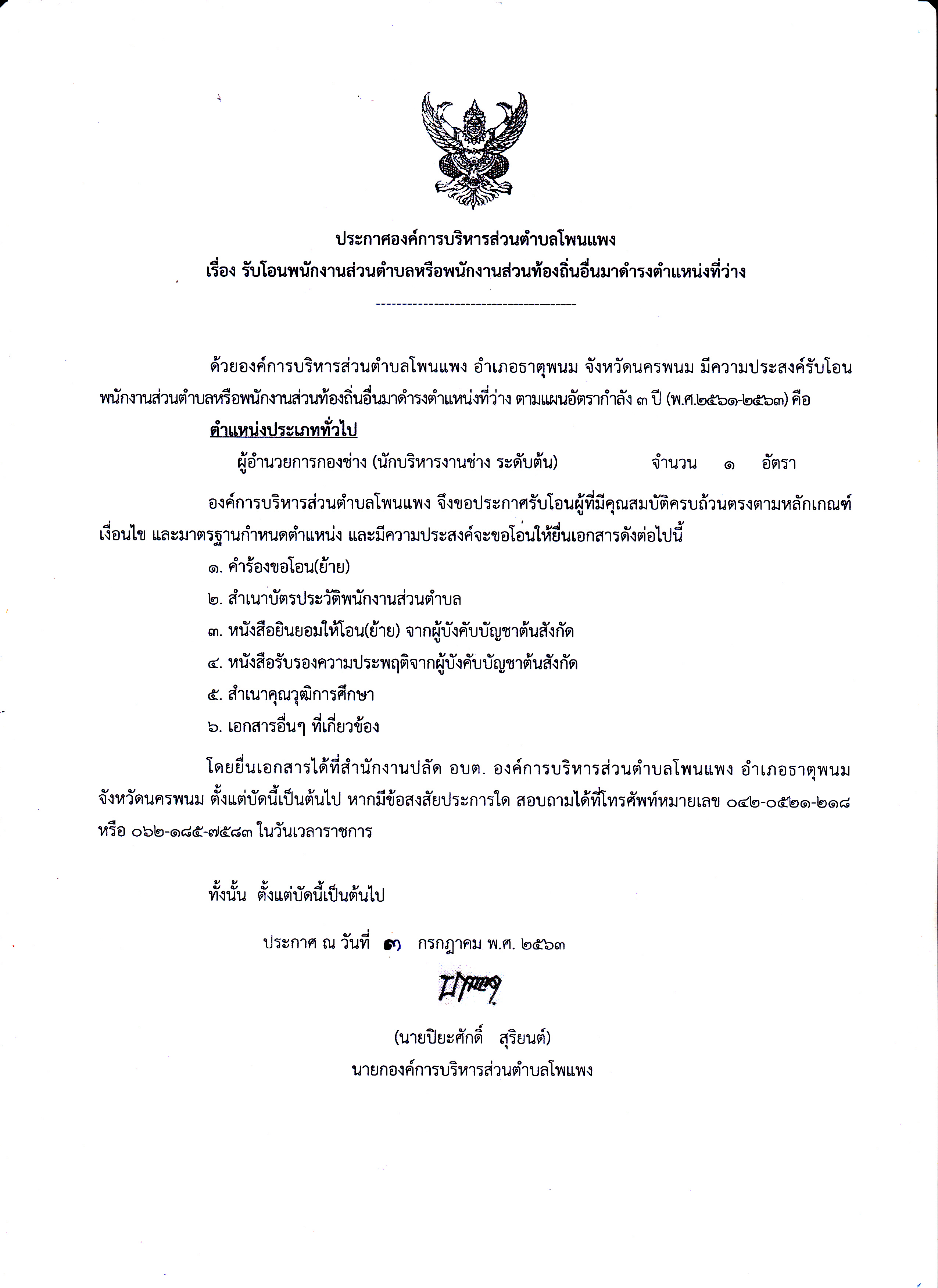 การโอน (ย้าย) ผู้อำนวยการกองช่าง นักบริหารงานช่างระดับต้น
