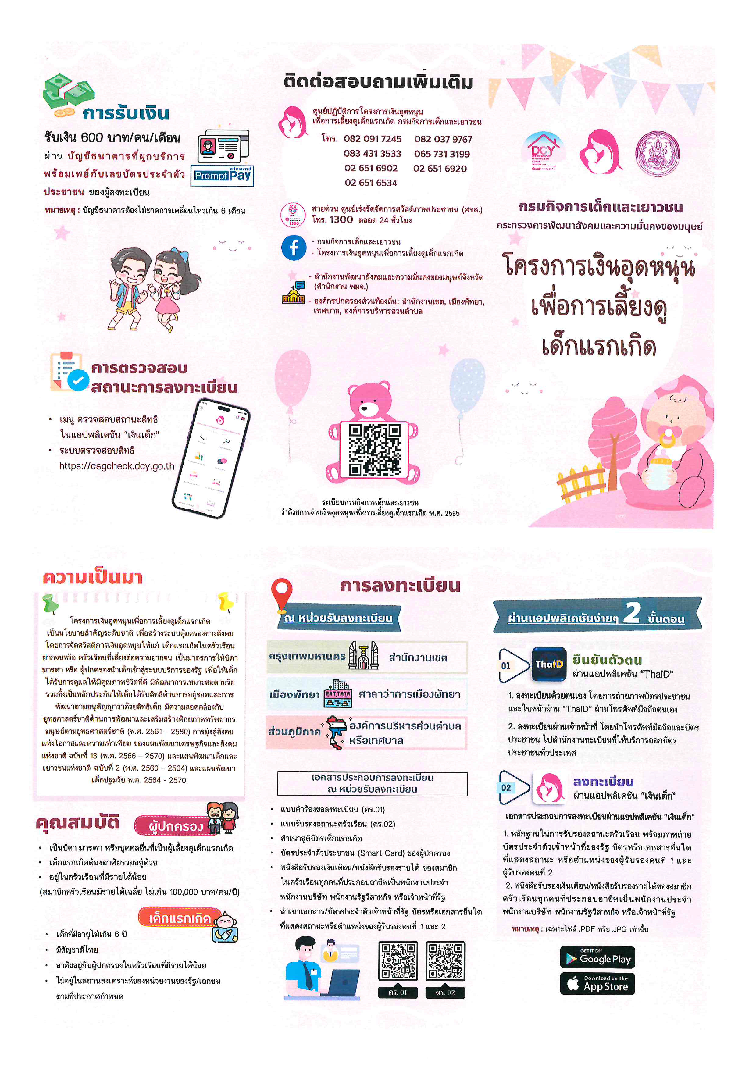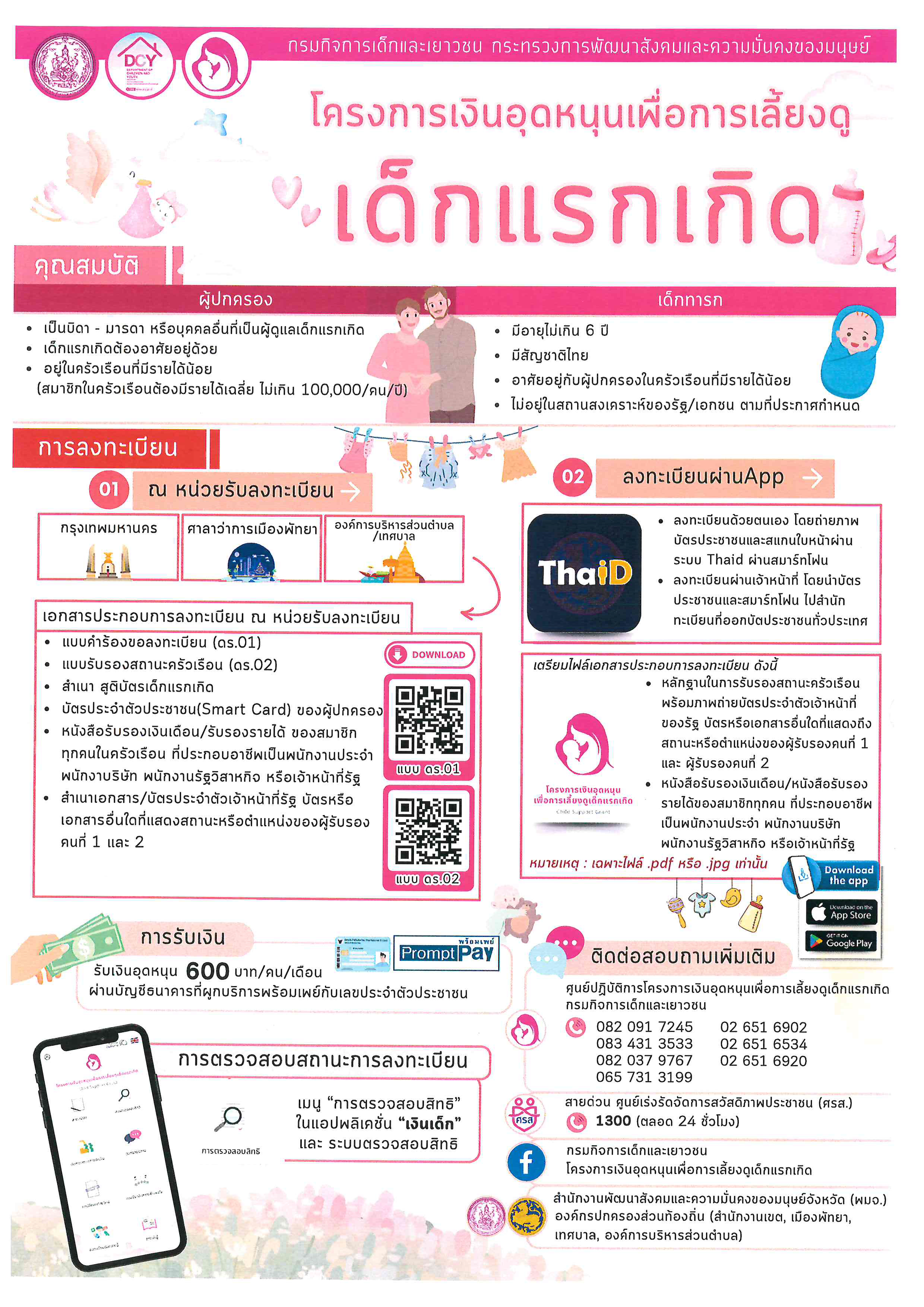 ประชาสัมพันธ์ การยื่นคำร้องขอลงทะเบียนเพื่อขอรับสิทธิเงินอุดหนุนเพื่อการเลี้ยงดูเด็กแรกเกิด