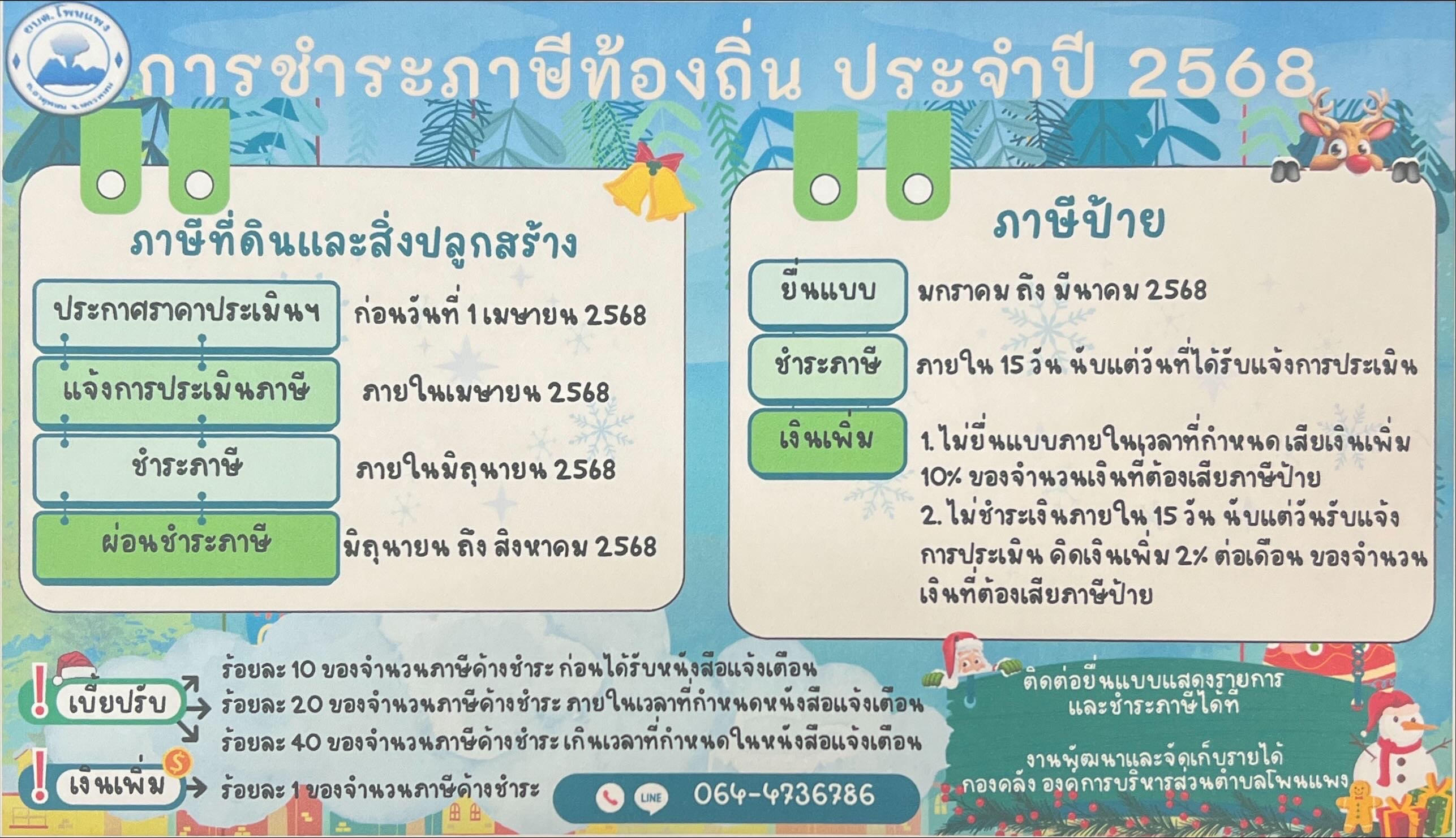 ประชาสัมพันธ์การชำระภาษีที่ดินและสิ่งปลูกสร้างและภาษีป้าย ประจำปี 2568