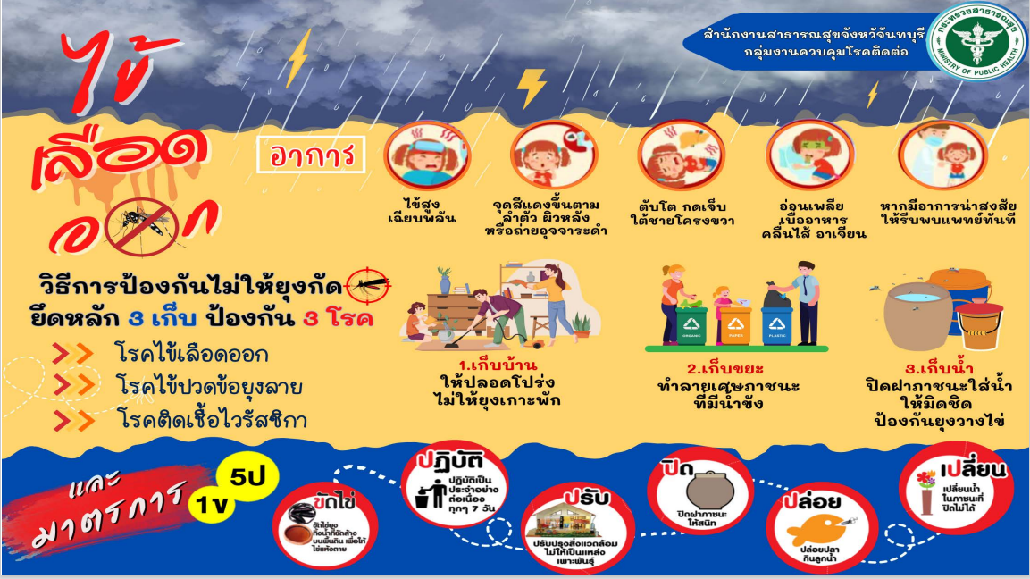 ชื่อเรื่อง : ประชาสัมพันธ์รณรงค์วิธีป้องกันโรคไข้เลือดออก ยึดหลัก 3 เก็บ ป้องกัน 3 โรค