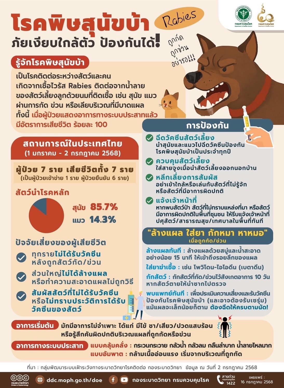 โรคพิษสุนัขบ้า???? เมื่อติดเชื้อและแสดงอาการแล้ว รักษาไม่หาย จะเสียชีวิตทุกราย ซึ่งสาเหตุของการติดเชื้อพิษสุนัขบ้าส่วนใหญ่ เกิดจากการถูกสุนัขหรือแมวกัด-ข่วน แล้วไม่ได้รักษา หรือเข้ารับฉีดวัคซีนป้องกันโรคพิษสุนัขบ้าอย่างถูกต้อง