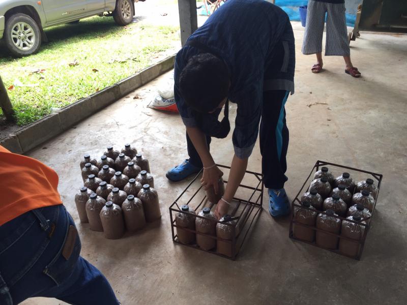ณ โรงเพาะเห็ดกลุ่มวิสาหกิจ บ้านโพนแพง หมู่ที่ 2 ตำบลโพนแพง อำเภอธาตุพนม จังหวัดนครพนม