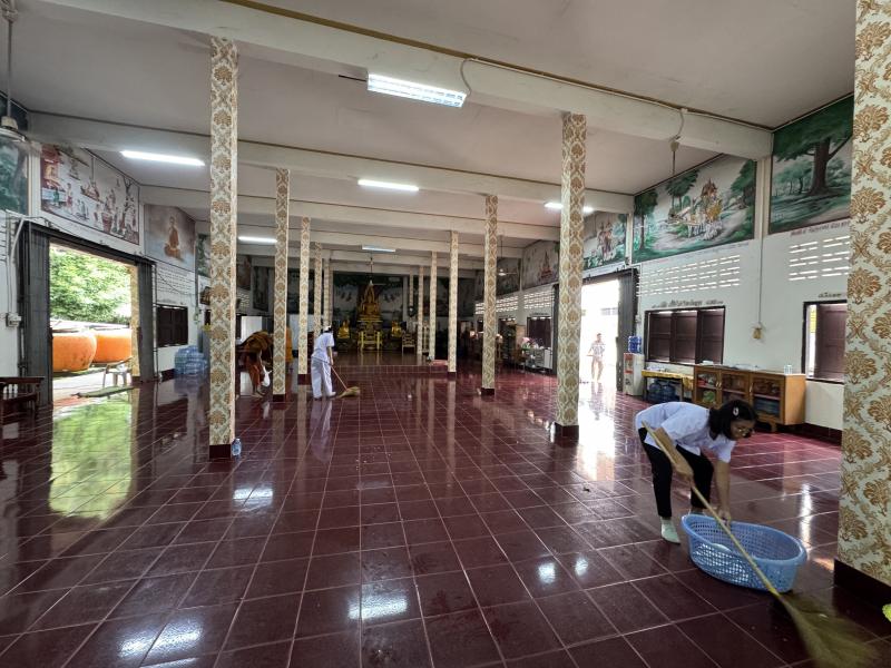 กิจกรรมทำบุญถวายเพลและทำความสะอาดบริเวณวัดบ้านโพนแพง