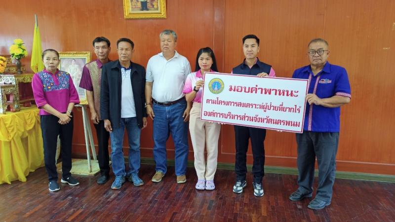 รายละเอียด : องค์การบริหารส่วนจังหวัดนครพนม ร่วมกับองค์การบริหารส่วนตำบลโพนแพง มอบเงินสงเคราะห์ช่วยเหลือค่าใช้จ่ายในการเดินทางไปรักษาพยาบาลของผู้ป่วยที่ยากไร้ของตำบลโพนแพง จำนวน 8 ราย