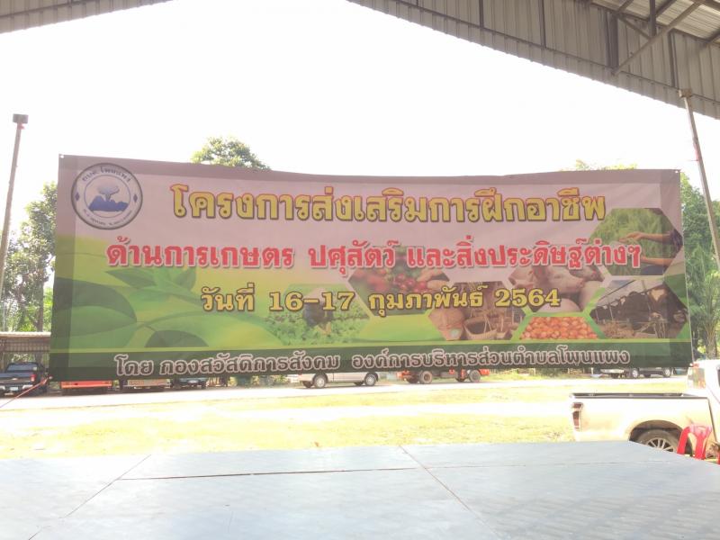 : วันที่ 16 - 17 กุมภาพันธ์ 2564 กองสวัสดิการสังคม องค์การบริหารส่วนตำบลโพนแพง จัดโครงการส่งเสริมการฝึกอาชีพด้านการเกษตร ปศุสัตว์ และสิ่งประดิษฐ์ต่าง ๆ
