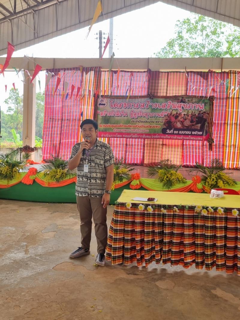 รายละเอียด : องค์การบริหารส่วนตำบลโพนแพง จัดโครงการสร้างเสริมสุขภาพ สร้างกำลังใจ ผู้สูงวัยสุขภาพดี ประจำปีงบประมาณ พ.ศ.2567 โดยมีวัตถุประสงค์เพื่อส่งเสริมให้ผู้สูงอายุของตำบลโพนแพงได้รับการส่งเสริมสุขภาพที่ดี มีความรู้ในการดูแลรักษาสุขภาพของตนเองอย่างถูกต้อง เหมาะสม มีสุขภาพจิตที่ดี คลายความเครียด สร้างคุณค่าให้เกิดขึ้นกับตนเอง อีกทั้ง เพื่อให้ลูกหลานได้แสดงออกถึงความรักและร่วมกิจกรรมการรดน้ำดำหัวขอพรผู้สูงอายุเนื่องในวันสงกรานต์ (วันขึ้นปีใหม่ไทยและวันครอบครัว)