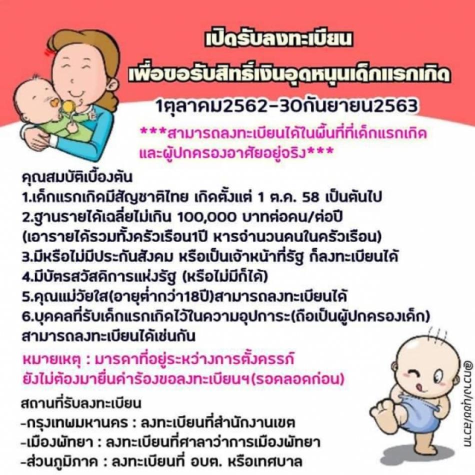 การรับลงทะเบียนรับเงินอุดหนุนเด็กแรกเกิด