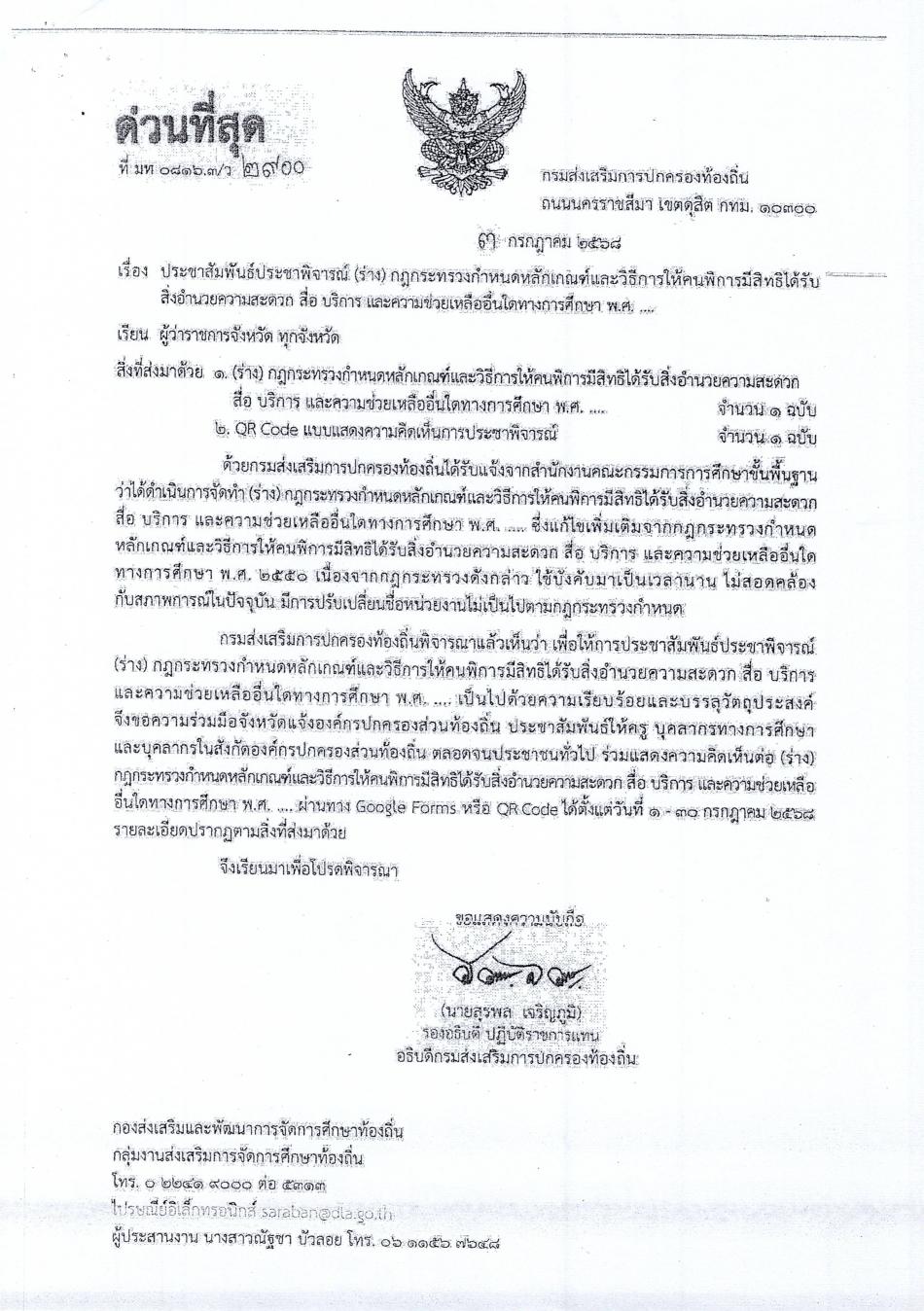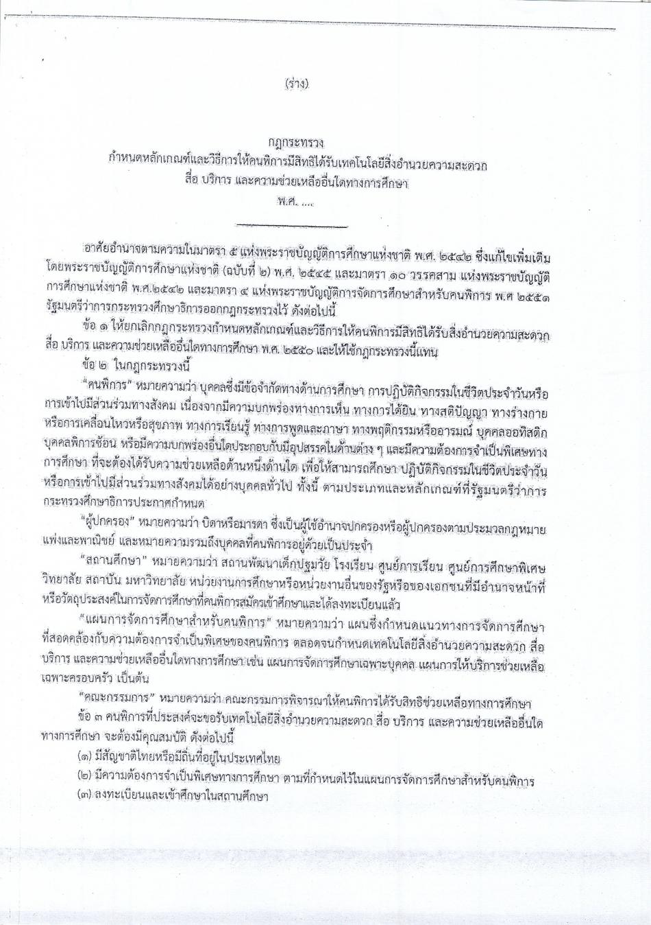 ประชาสัมพันธ์ประชาพิจารณ์ (ร่าง) กฎกระทรวงกำหนดหลักเกณฑ์และวิธีการให้คนพิการมีสิทธิได้รับสิ่งอำนวยความสะดวก สื่อ บริการ และความช่วยเหลืออื่นใดในทางการ