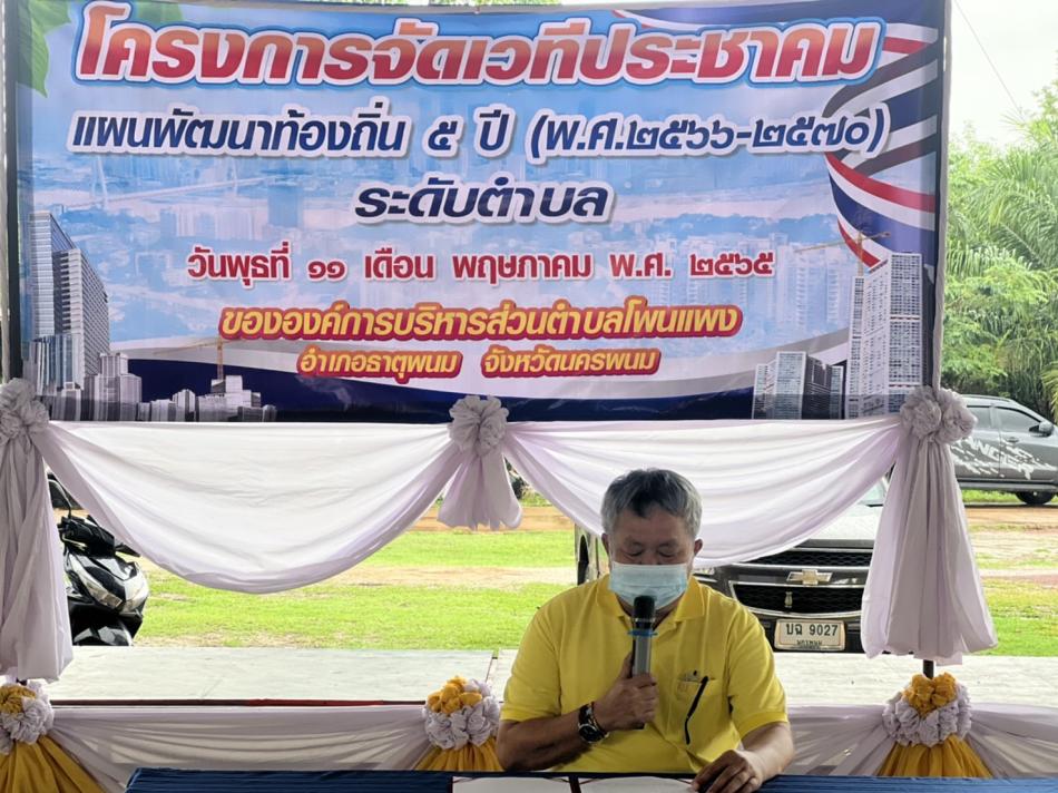 โครงการจัดเวทีประชาคมแผนพัฒนาท้องถิ่นห้าปี (พ.ศ.2566-2570) เพิ่มเติม ครั้งที่ 1/2565 [11 พฤษภาคม 2565]